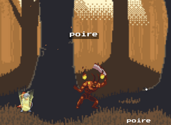 Tape les mots qui apparaissent au-dessus des ennemis puis valide avec "espace" pour attaquer ou te défendre.