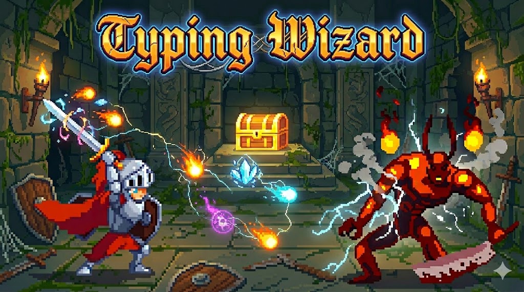 Typing Wizard est un jeu d'apprentissage du clavier sous forme de RPG pixel art. Incarne un mage chevalier qui traverse les contrées obscures de son royaume pour retrouver un trésor légendaire.